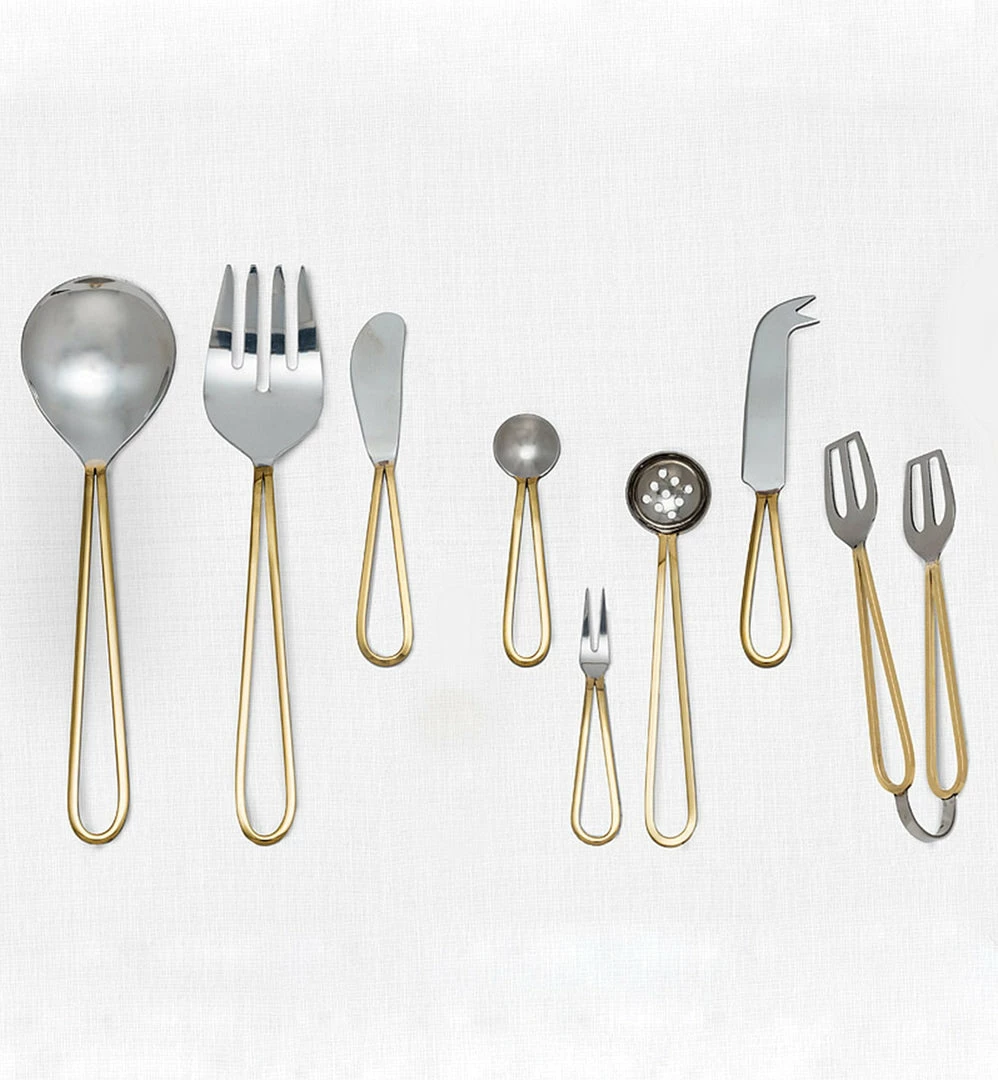 Made of brass and stainless steel, the minimal design of this fork is perfect for serving up anything from hors d’oeuvres to appetizers, accenting any style of decor. 5″L. Shop the Art Deco Collection to build a cohesive serving set.