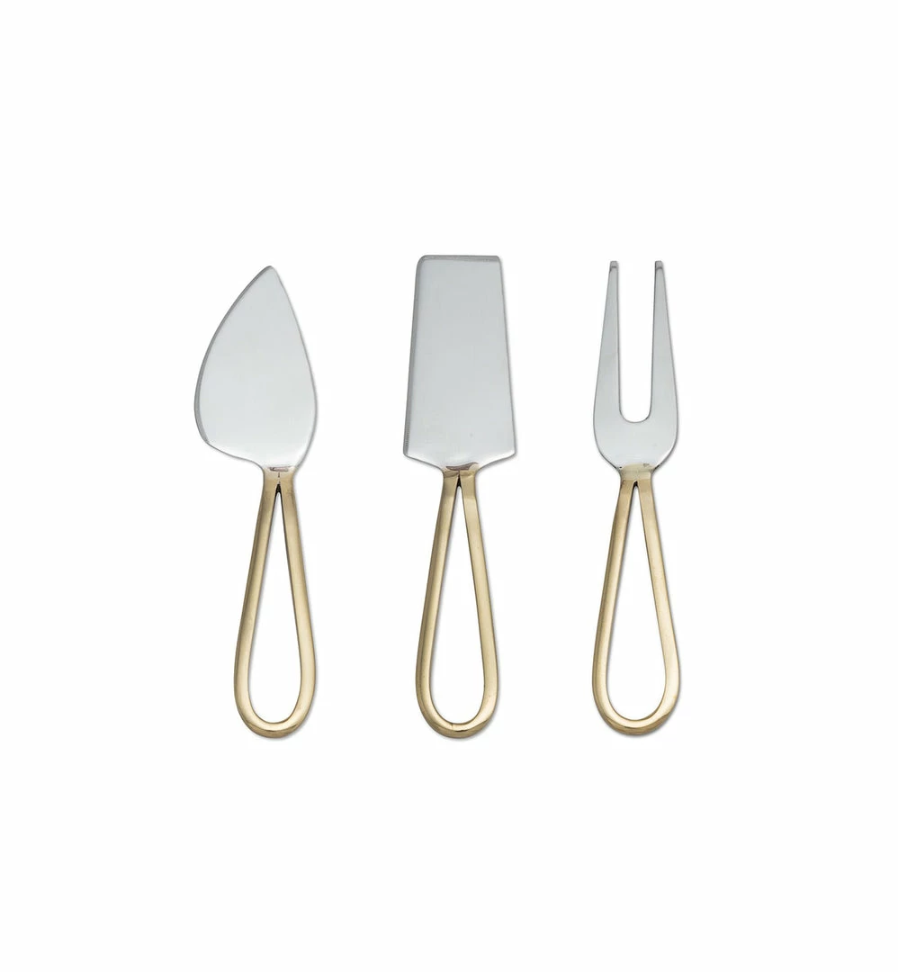 Made of brass and stainless steel, this set of three distinctive knives is perfect for serving up any style of cheese, from smooth to firm, accenting any style of decor. 6″L. Shop the Art Deco Collection to build a cohesive serving set.