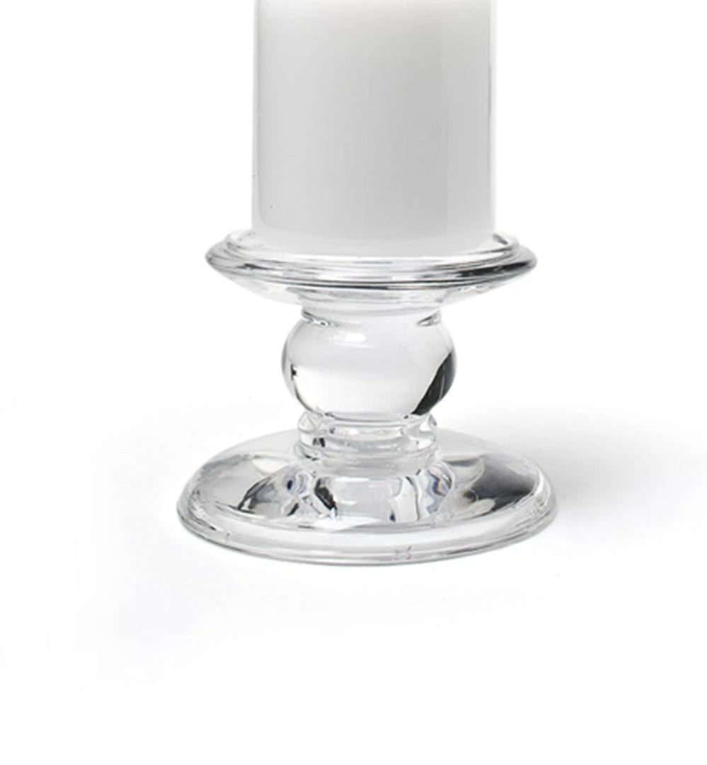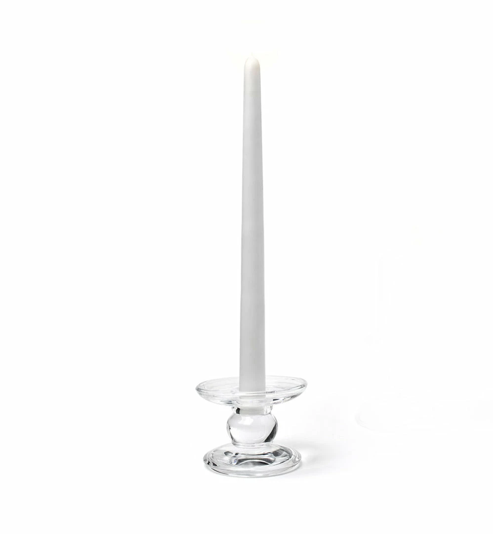 Our artful glass candle holder is luxurious and practical at once. Its dual-purpose footed design stands on either end to display pillar (up to 3″) or taper candles. Flip to suit your needs. 3″H.Â