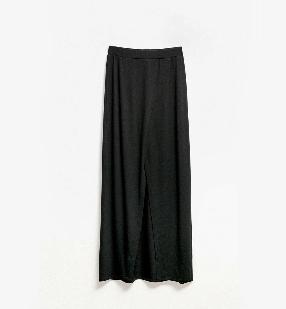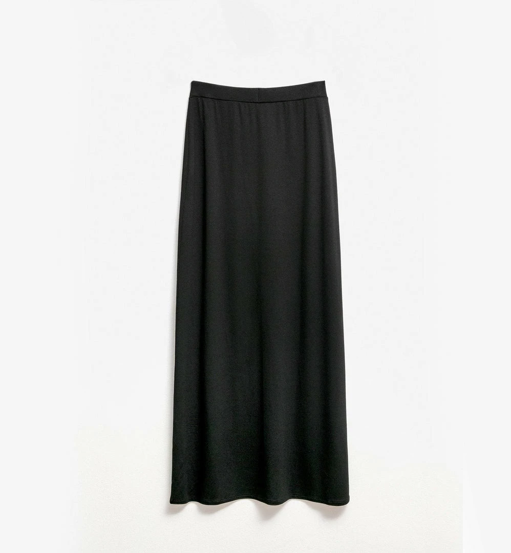 Day-to-night maxi skirt, slit can be worn in the front, side or back, elastic waistband, straight fit, 95% crepe viscose, 5% elastane.