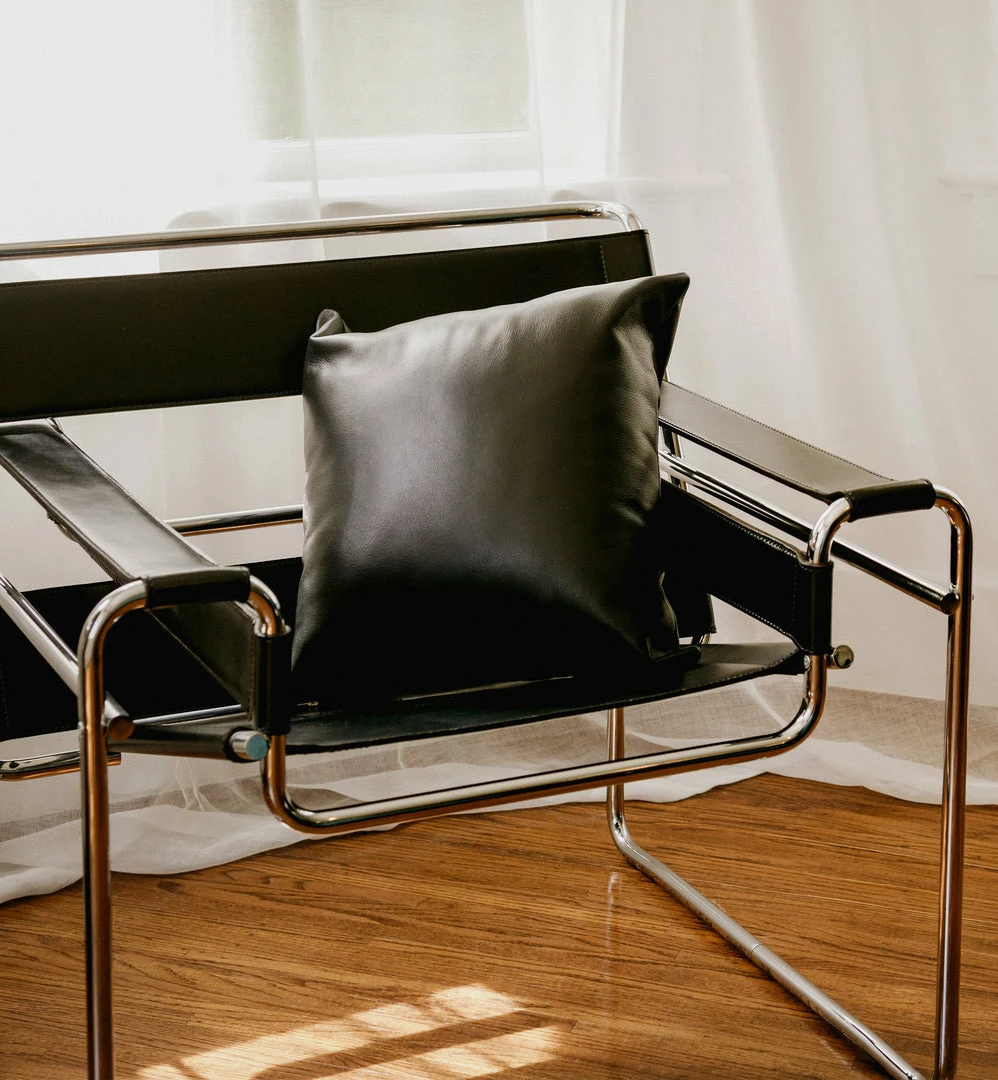 Designer’s Notes: We originally created these cushions for our own studio sanctuary. They are strong yet comforting pieces that anchors us in the present. Our easy palette in Italian leather offered in 2 classic shapes will make any space feel like home.