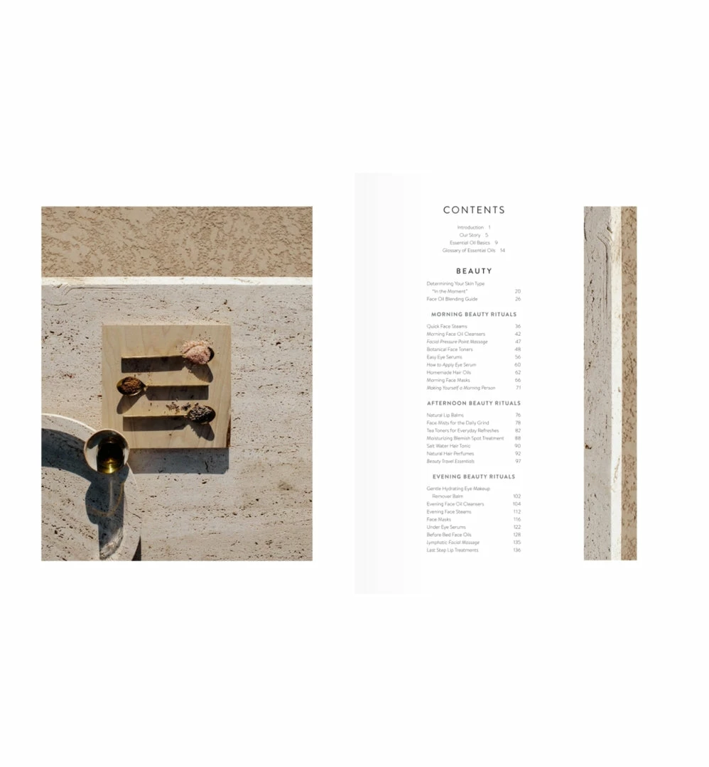 The book guides you through ways to customize your beauty, body, and home routines–turning them into easy yet sophisticated wellness experiences. Learn how to create a custom face oil for your skin type; do a facial lymphatic massage; make a Mediterranean-inspired botanical foot soak; and blend unique essential oil diffuser aromas for your home. Essential Well Being provides all-natural rituals for morning, afternoon, and evening, and shares how to transform the minutes of your busy day into small spa moments that fill your cup back up. Explore your own potential through the simple act of taking time for yourself.