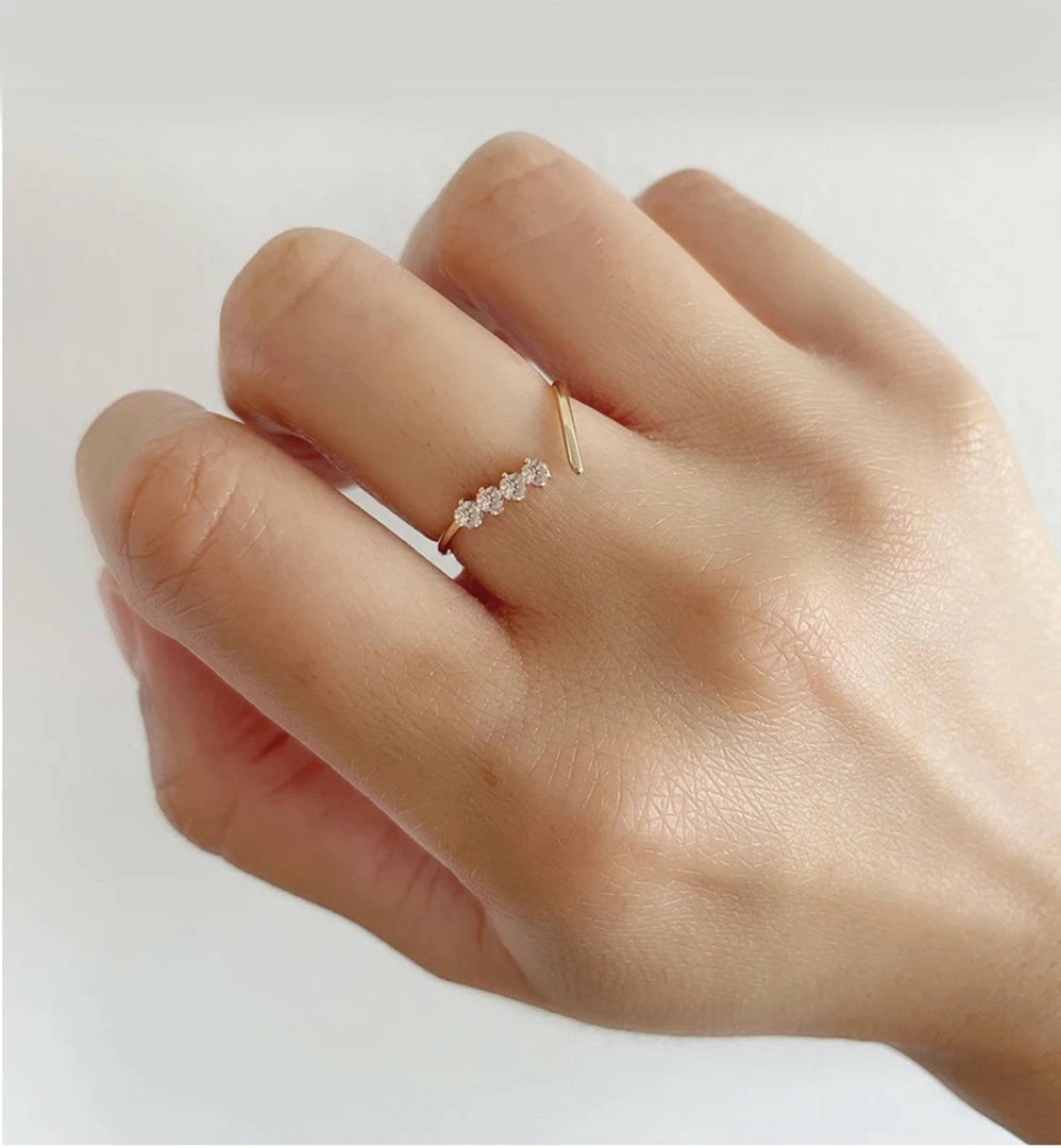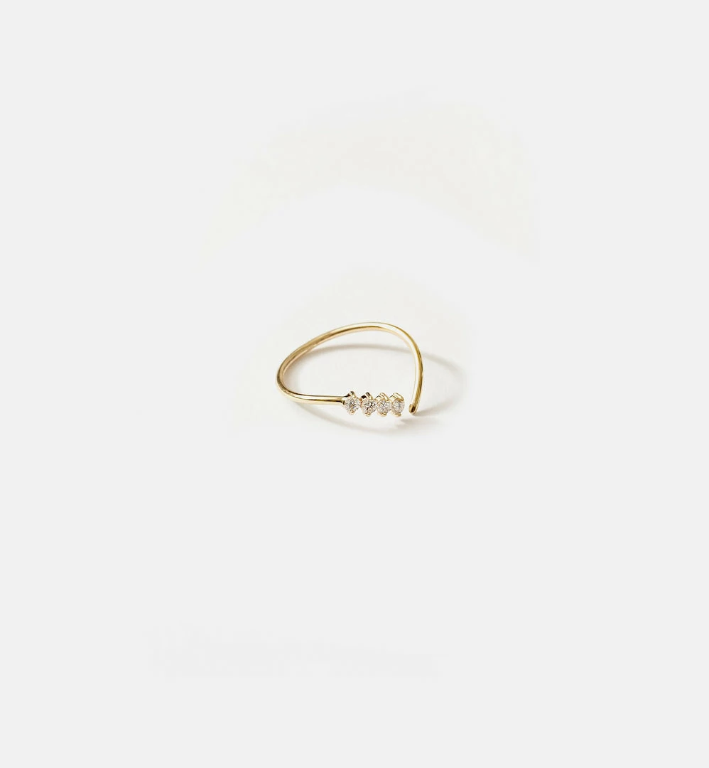 Open band 4 diamond ring, 1.15mm band, 14kt yellow gold.