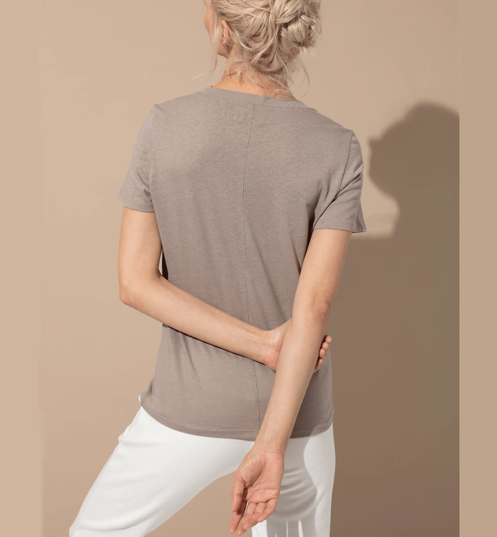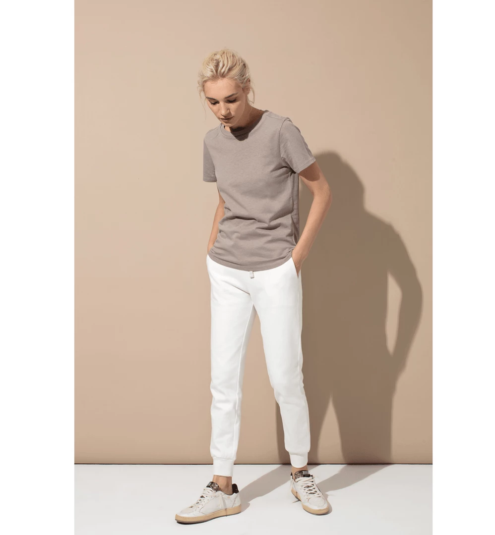 Crew neck t-shirt, straight fit, back seam, crafted from custom-made premium 100% Aegean cotton fabric. Seen here paired with our Pedestal Joggers.
