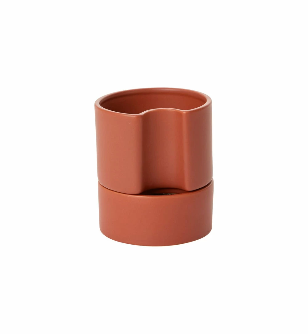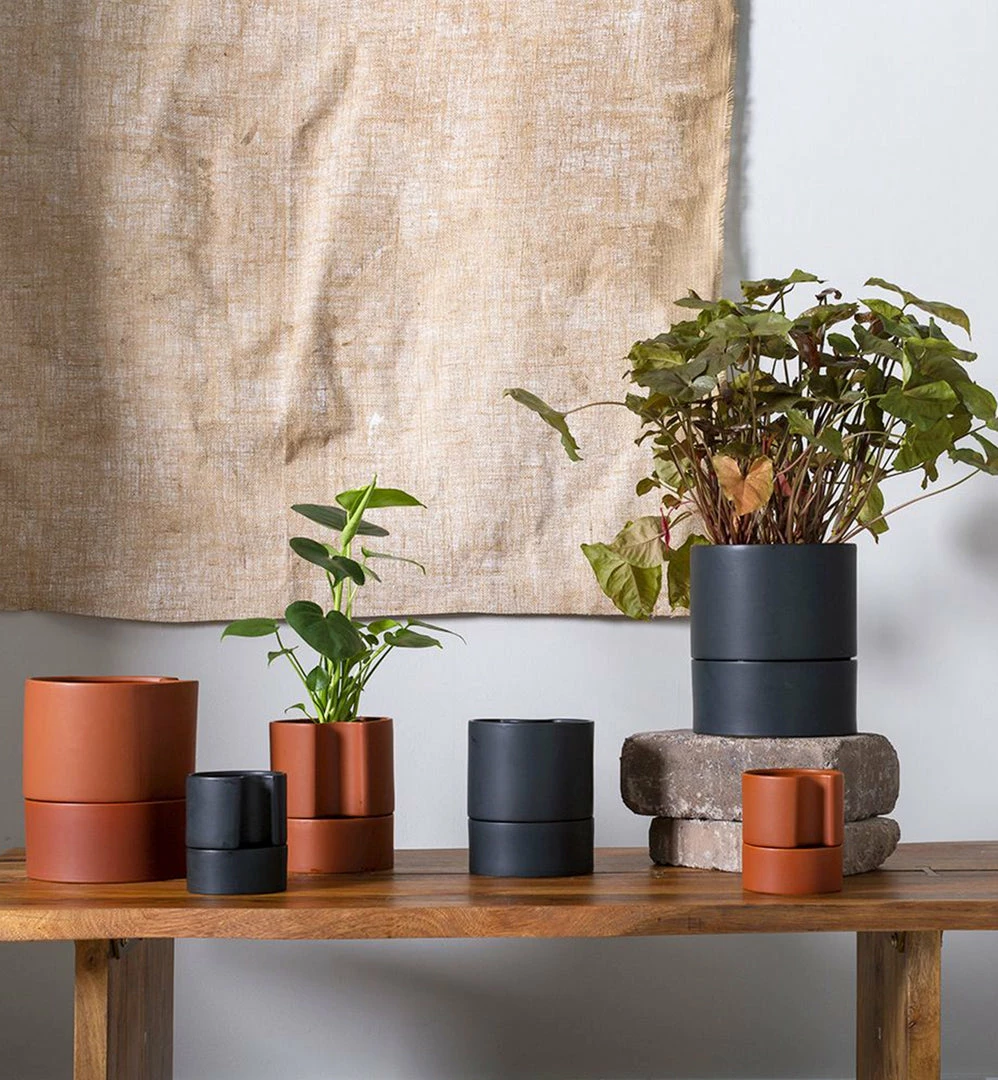 Both versatile and stylish, this ceramic planter was designed to be utilized as a traditional pot and saucer, or as a self-watering pot.