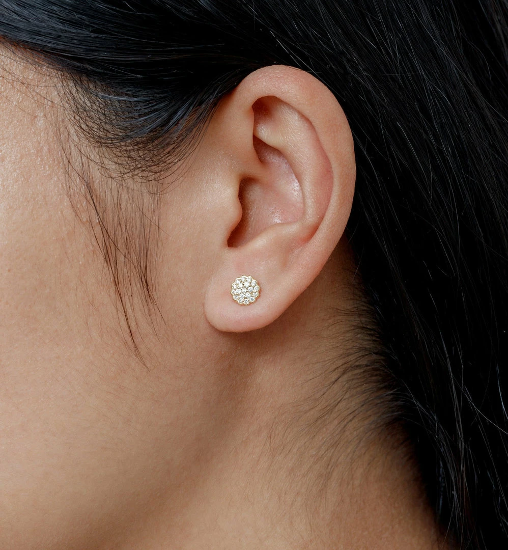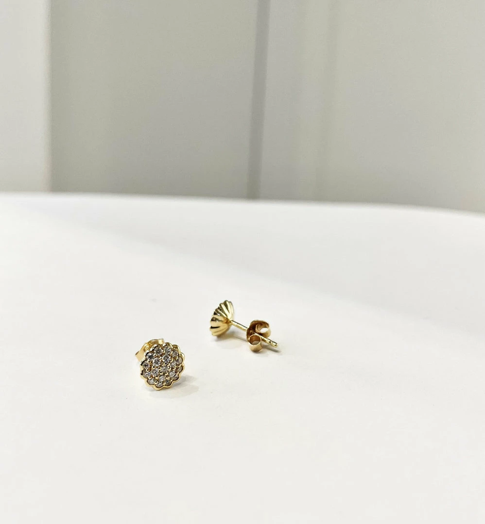 Pair of diamond flower stud earrings, 0.64 carat SI, 18kt solid yellow gold.