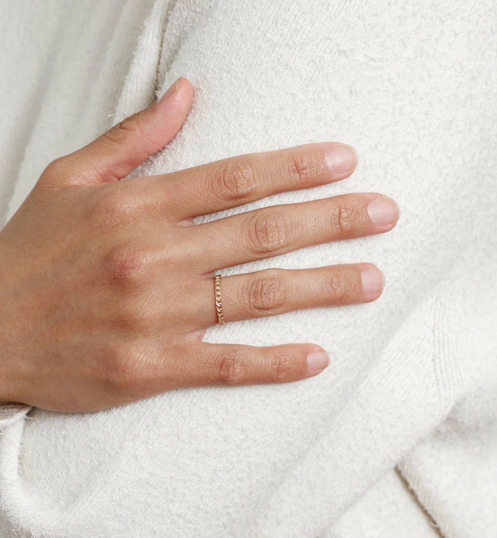 Rigid chain link ring, 2mm band, 14kt yellow gold.