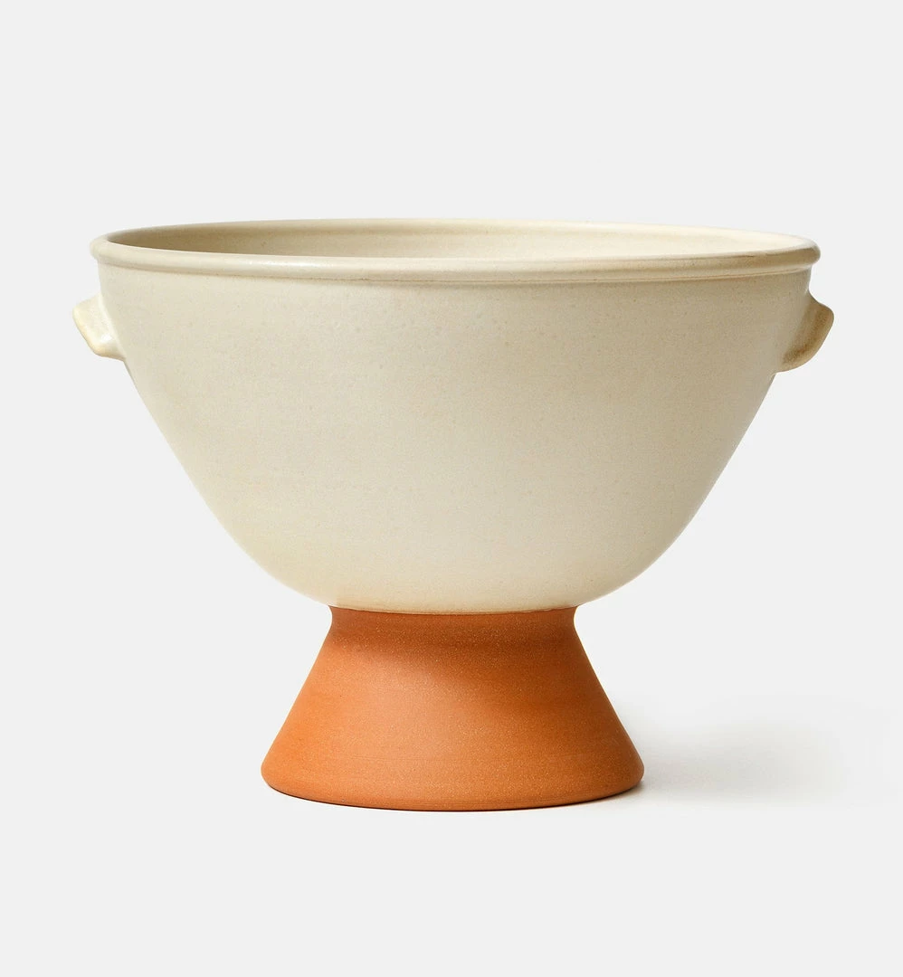 The nobel and simple lines of our presentation bowl can be both formal or informal. This versatile vessel can be used to hold produce on the kitchen counter or display florals on an entryway table. 9” x 12 1/2”.