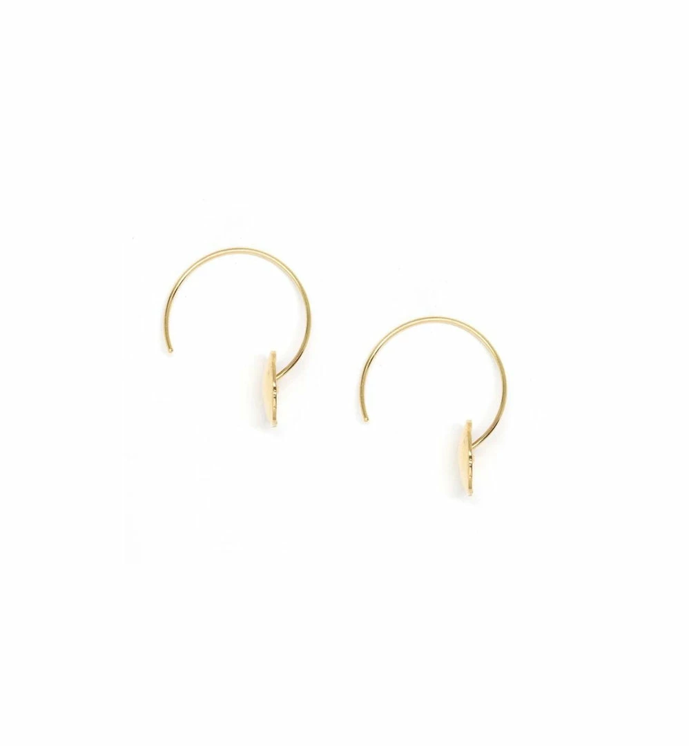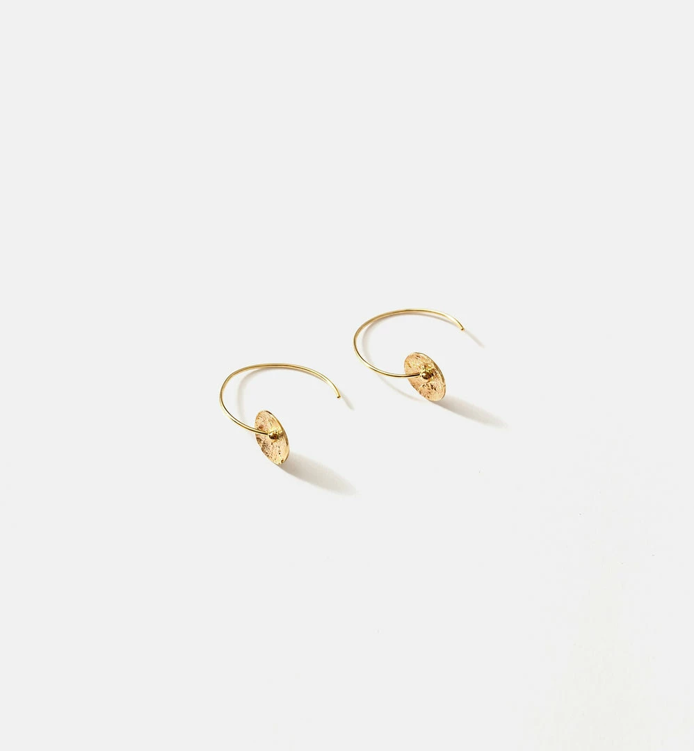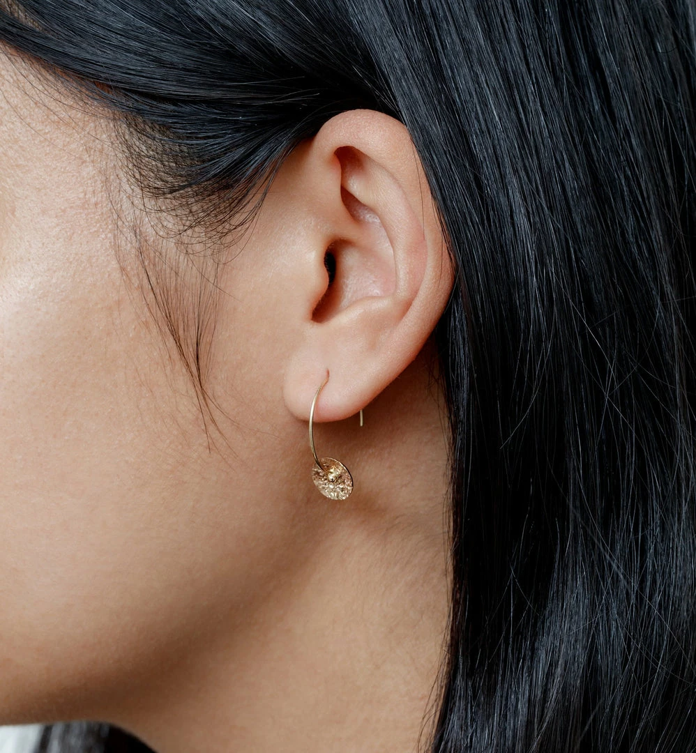 A pair of organically shaped disc earring, approximately 7/8″ diameter, 14kt solid yellow gold.