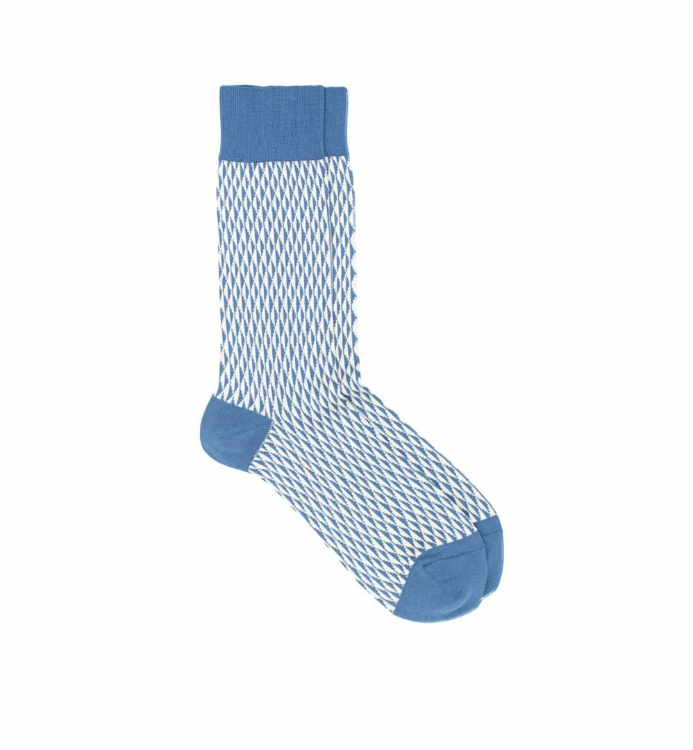 Designer’s Notes: Designed in elevated and fun patterns, these custom socks are a collaboration with a 56-year-old Portuguese hosiery company. They stay up comfortably all day long.