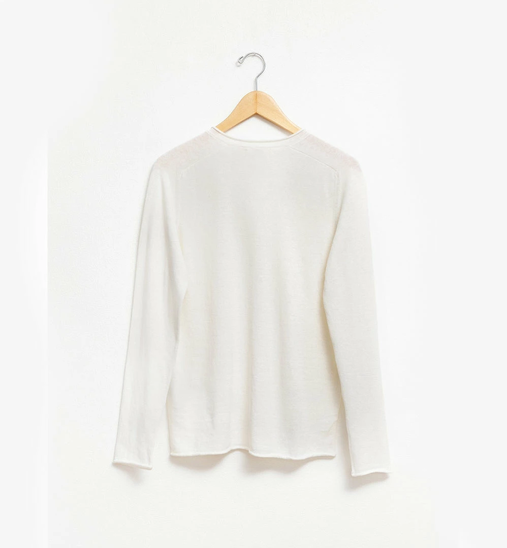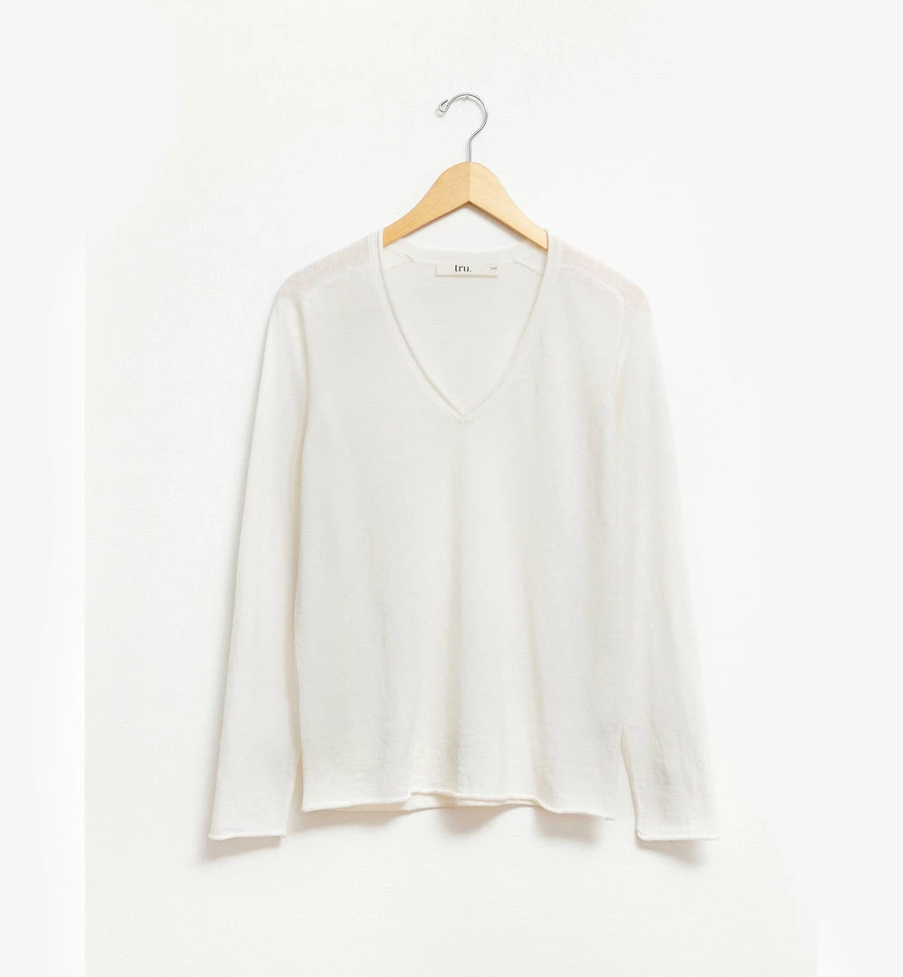 Rolled v-neck lightweight sweater, semi-fitted, 70% cotton, 30% linen.