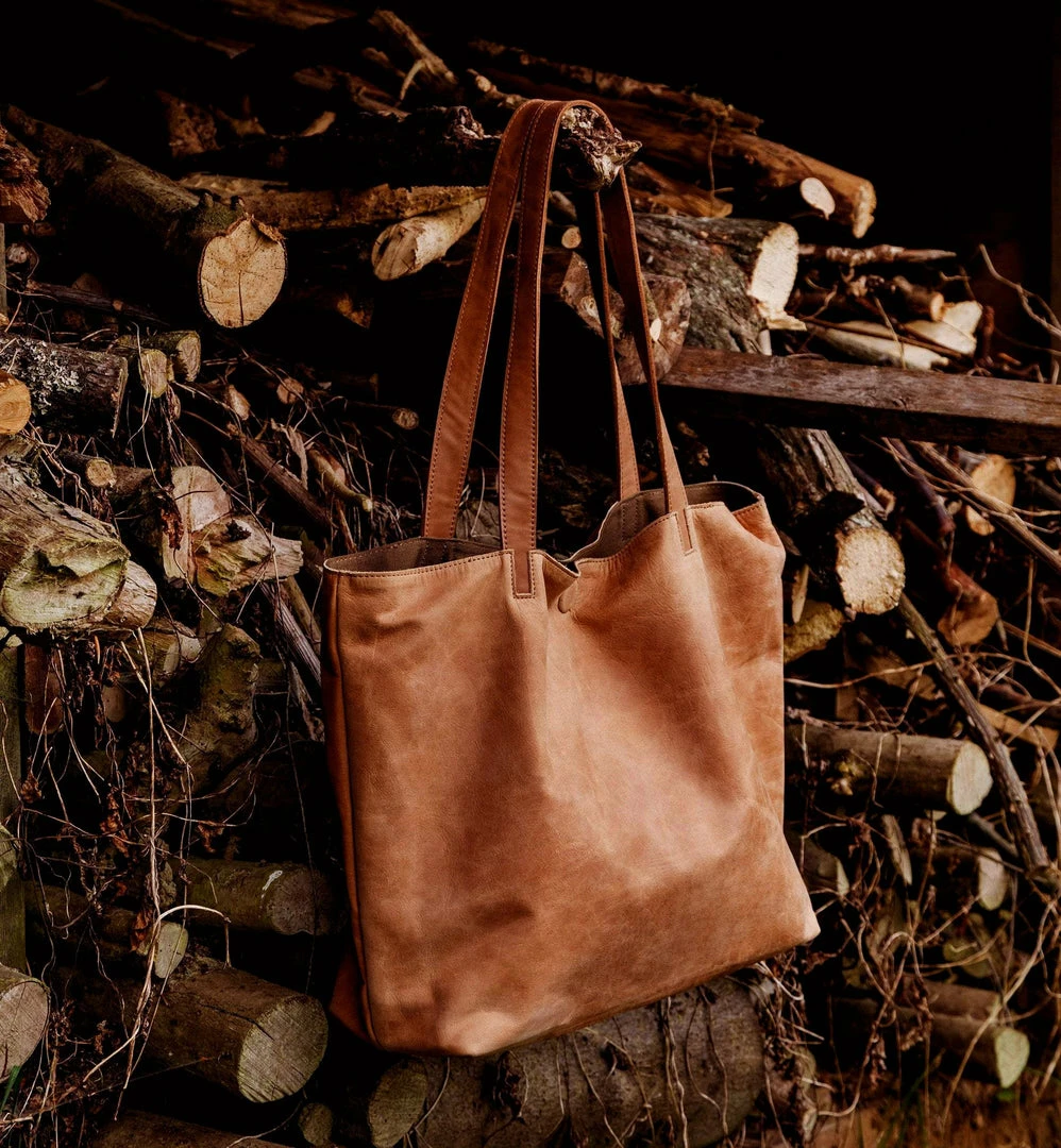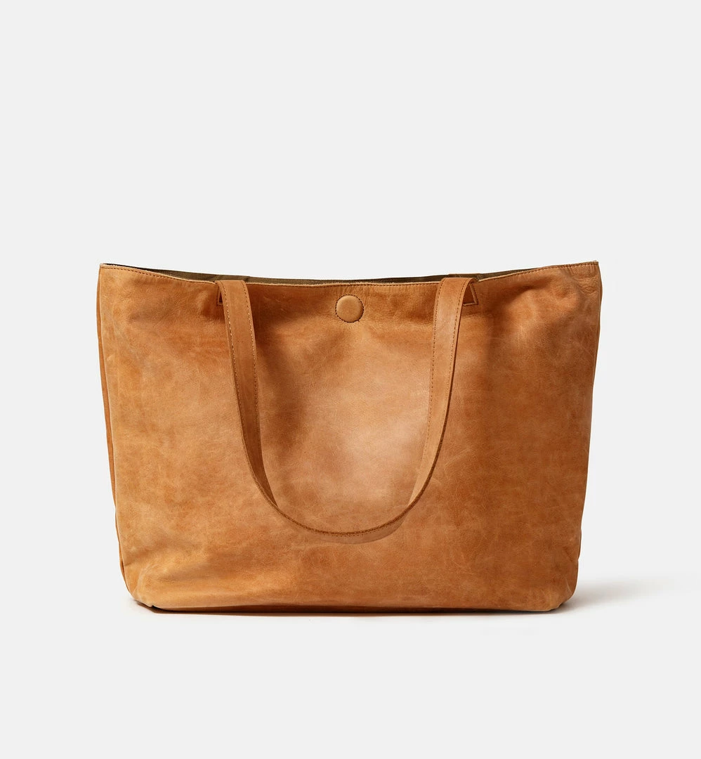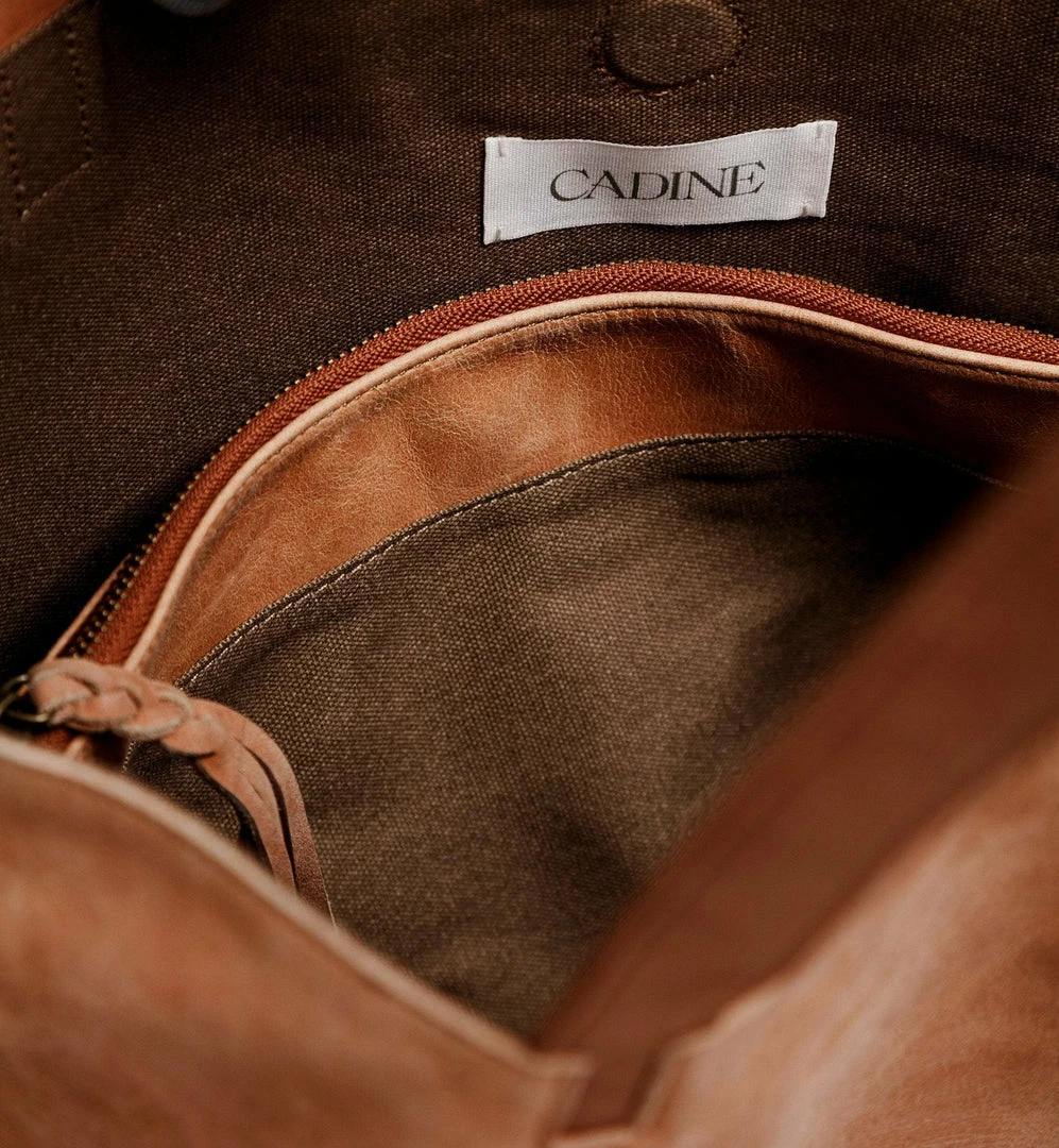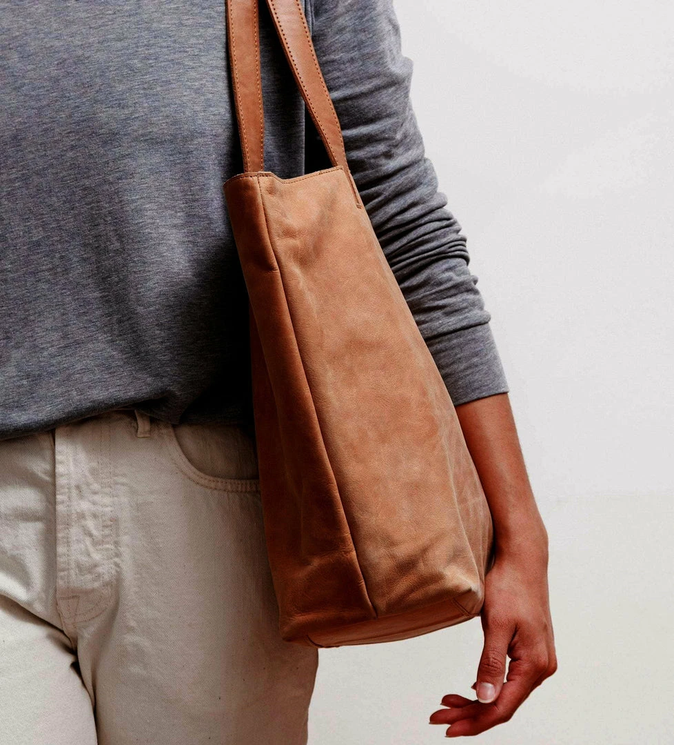 100% genuine leather tote bag, cotton canvas lining, zippered middle compartment, magnetic closure, fits laptop, 14.5″ x 12.5″ x 5″ (37cm x 32cm x 13cm).