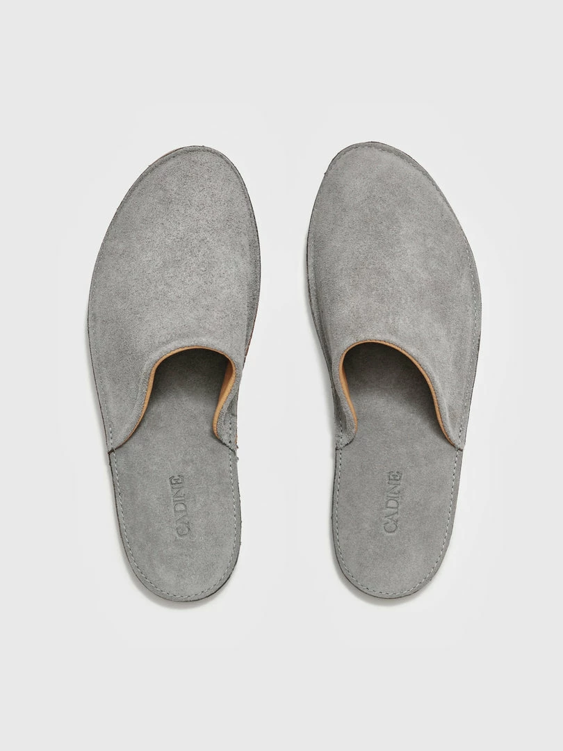 100% Italian genuine suede leather slide, handmade, close toe, leather lined, rubber crepe sole.