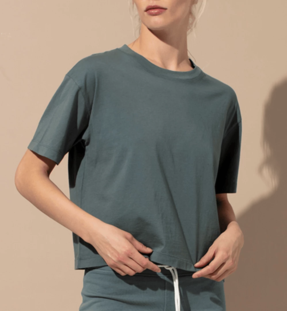 Crew neck crop t-shirt, boxy fit, drop shoulder, crafted from custom-made premium Aegean 100% cotton fabric.