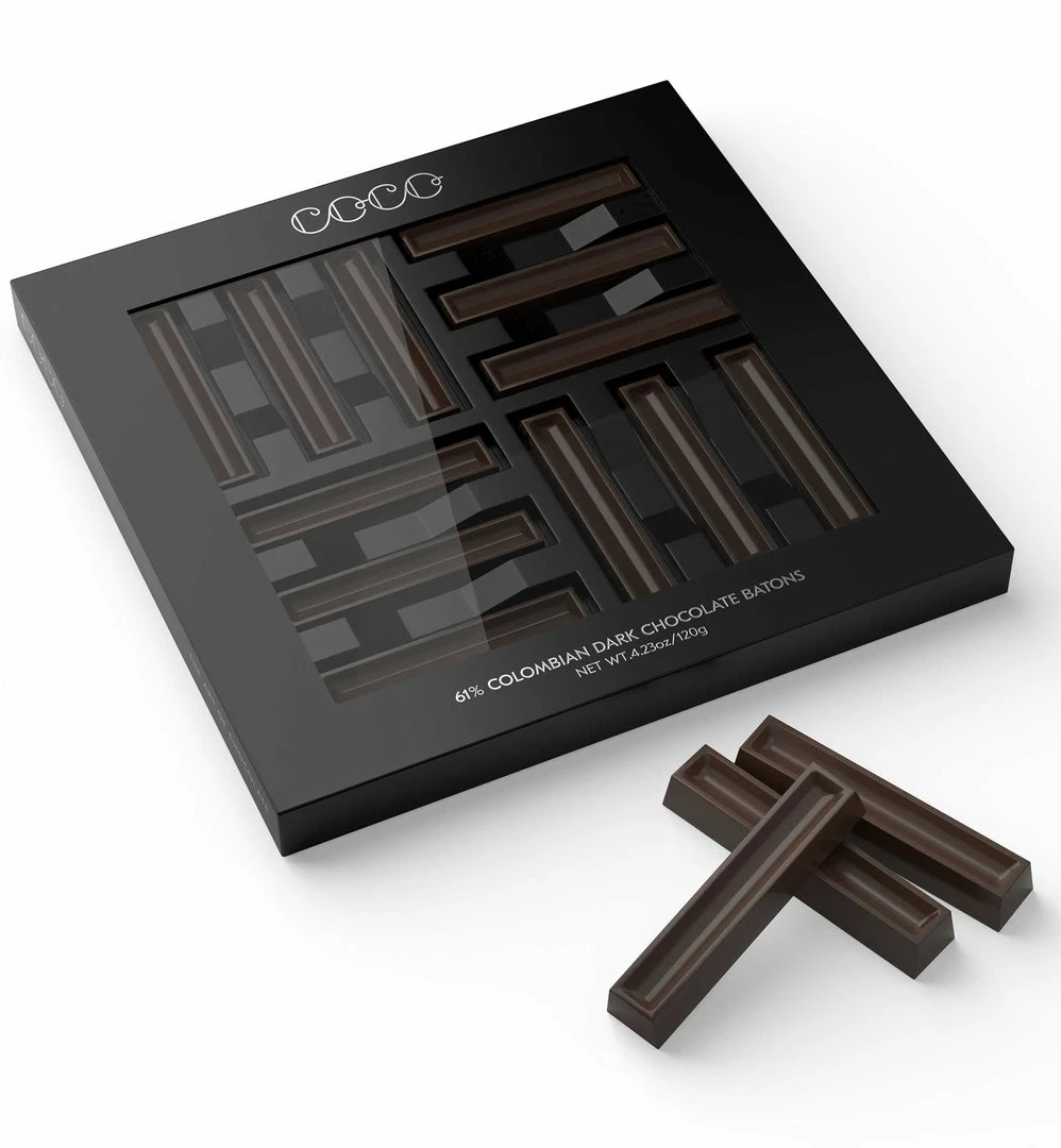 From Edinburgh, Scotland, these chocolate batons are made from the maker’s luxurious classic 61% single origin Colombian Dark Chocolate. Gluten-free.