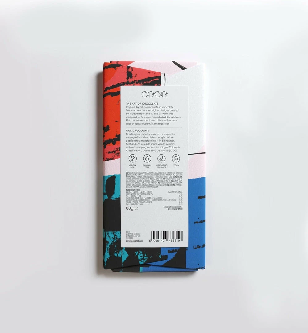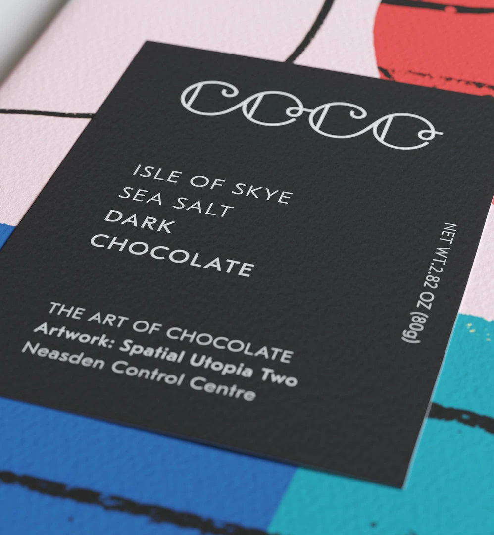 From Edinburgh, Scotland, Coco Chocolatier meticulously crafts their portfolio of contemporary chocolate with the world’s finest Colombian cocoa, before enveloping them in original designs by independent artists. Neasden Control Centre / Stephen Smith is an award-winning illustrator & graphic artist. His work is known for its multi-disciplined process led hand drawn style within graphic composition.