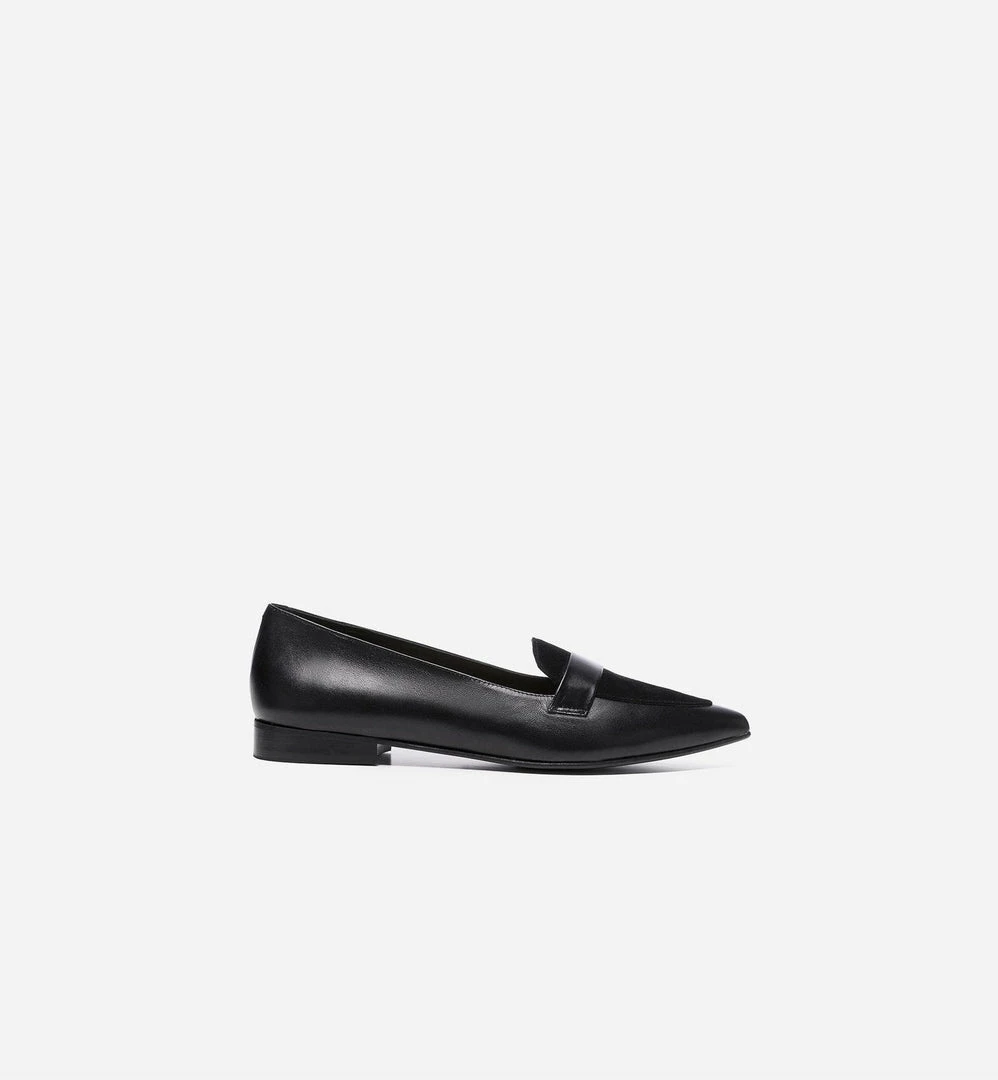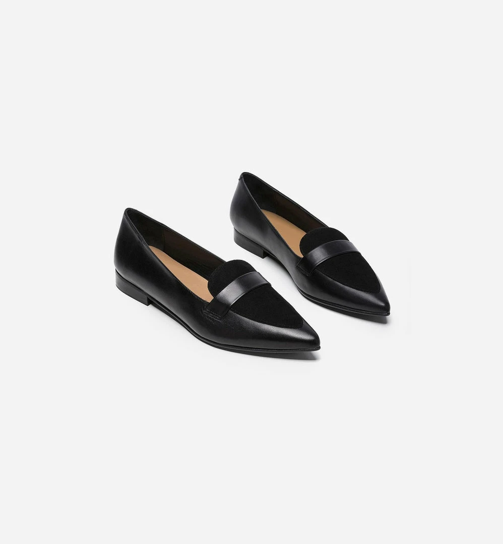 Genuine leather flats with suede detailing, pointed toe, 10mm heel, fits true to size.