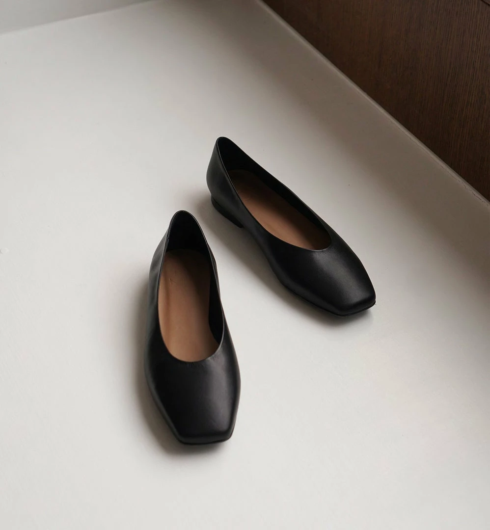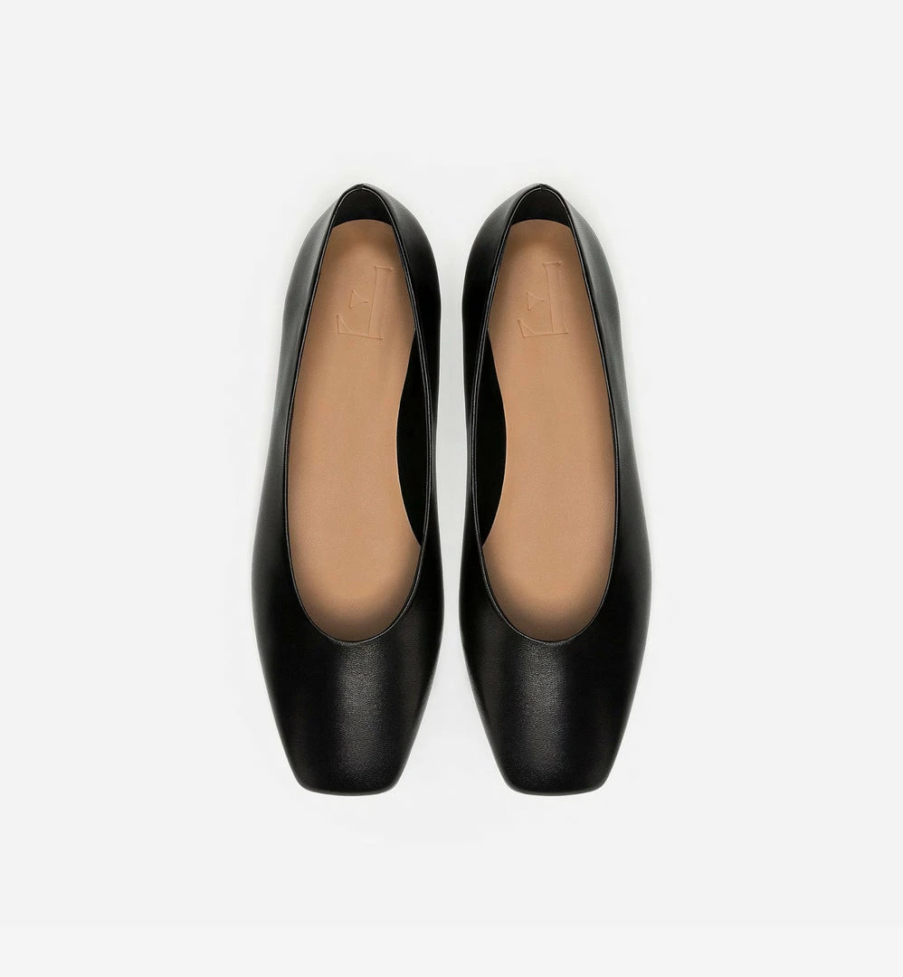 Genuine lambskin leather ballet flats, square toe, 6mm heel, fits true to size.