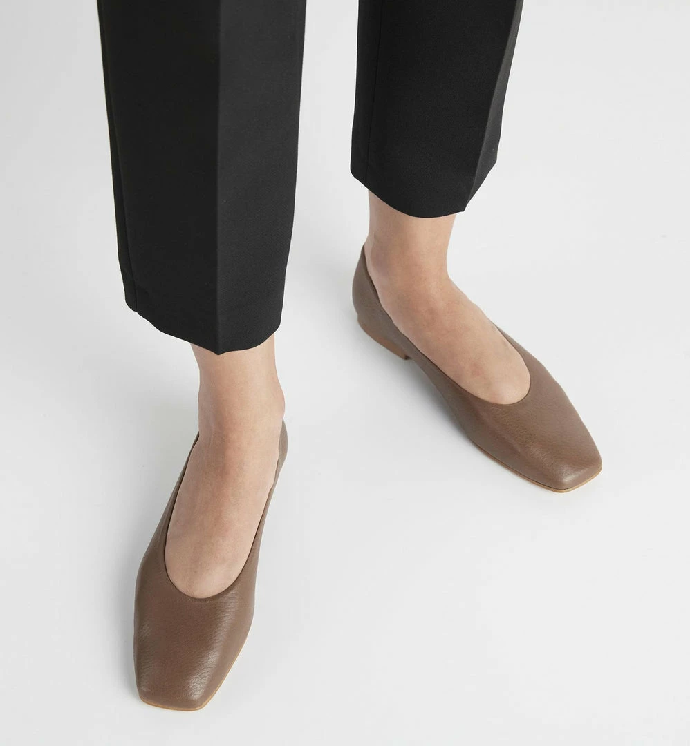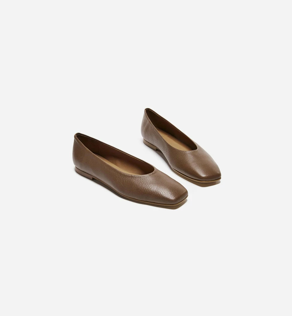 Genuine leather ballet flats, square toe, 6mm heel, fits true to size.