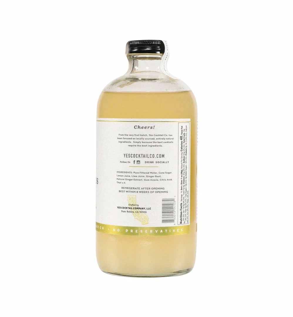 Ingredients: Pure filtered water, cane sugar, lemon juice, lime juice, ginger root, natural ginger extract, gum acacia, citric acid.
