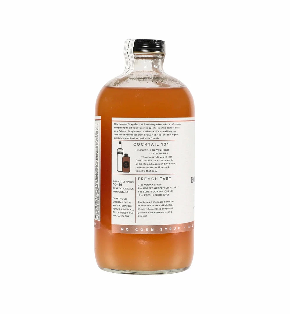 This Hopped Grapefruit and Rosemary mixer adds a refreshing complexity to all of your favorite spirits. It’s the perfect twist on a paloma, greyhound or mimosa. It’s everything you love about your local craft brew. Not-too-snobby, highly drinkable and best served with friends. 16 fl oz.